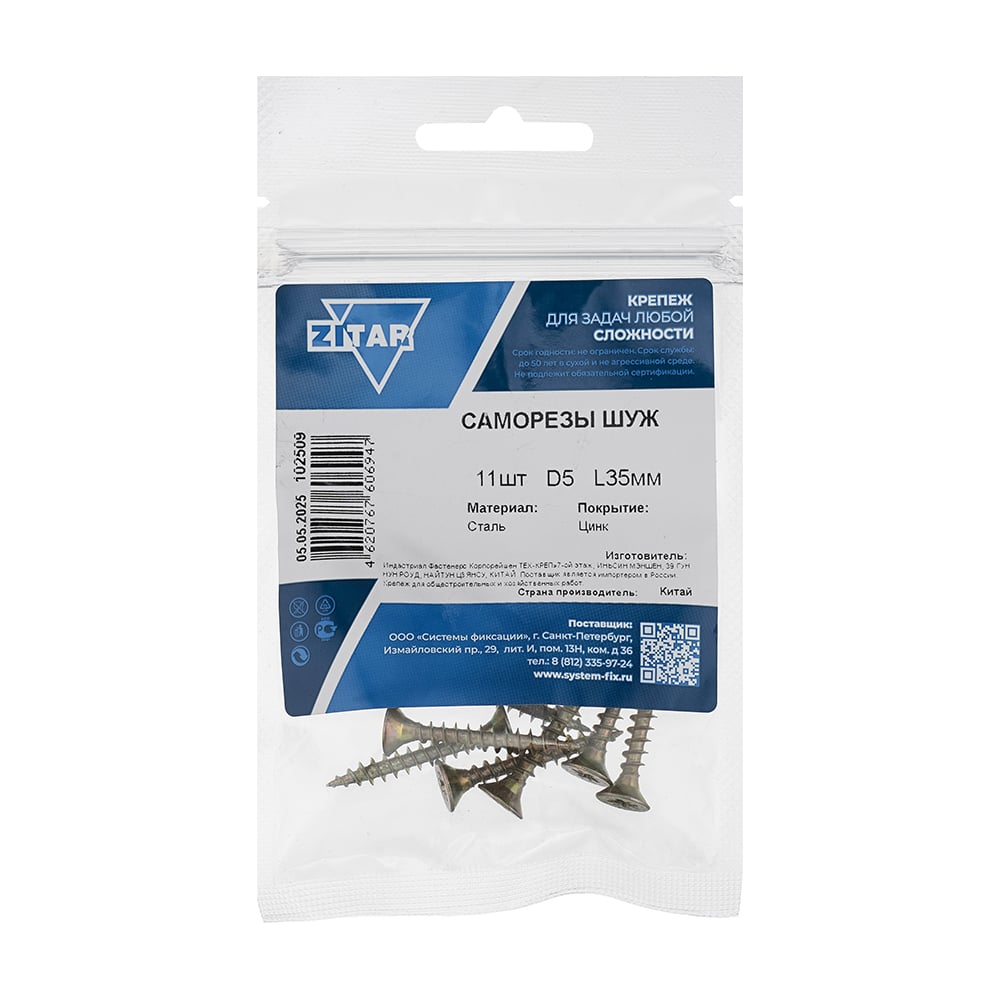 Саморез ШУж с потайной головкой 5,0x35 мм, 11 шт., пакет Zitar 102509