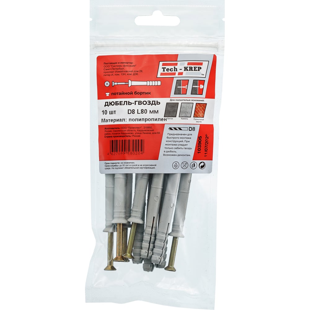 Дюбель-гвоздь Tech-Krep 8х80 потайная манжета, полипропилен 10 шт - пакет 103905