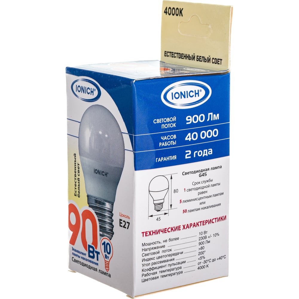 | Цветовая температура | 4000 К |