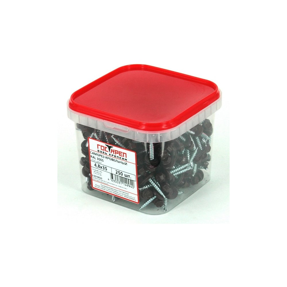 Кровельный саморез Госкреп 4.8х35 RAL 3005 красное вино 250 шт., б.пл.конт. 1000 мл 2-0016630