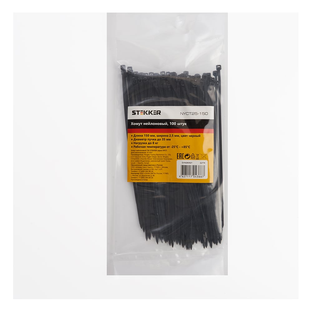 Хомут STEKKER NYCT25-150 нейлоновый 2.5x150 мм d пучка max 35 мм нагрузка 8 кг черный 32774