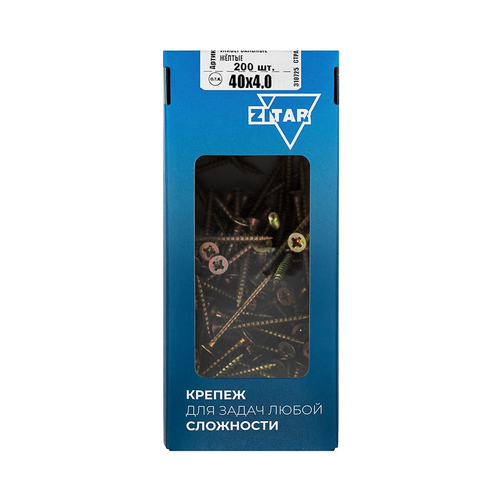 Универсальные саморезы, желтые, 40x4,0 мм, 200 шт., коробка с окном Zitar 102245