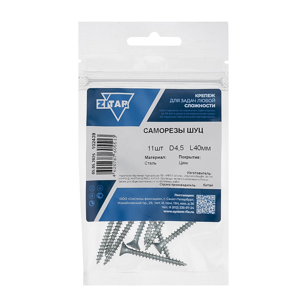 Саморез ШУц с потайной головкой 4,5x40 мм, 11 шт., пакет Zitar 102439