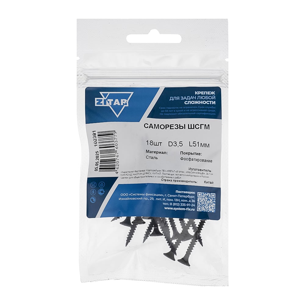 Саморез ШСГМ 3,5x51 18 шт пакет Zitar 102381