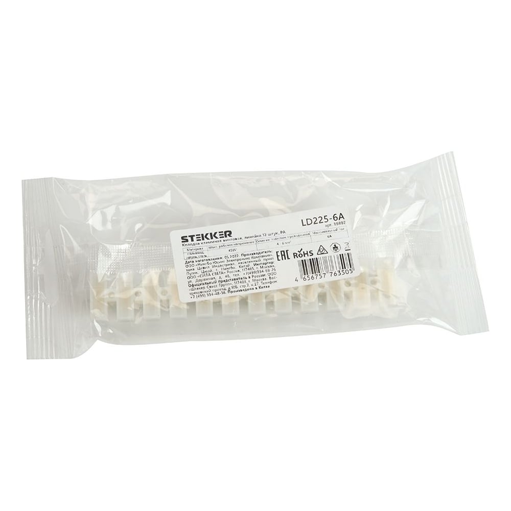 Клеммная винтовая колодка STEKKER LD225-6A линейка 12 штук, полиамид, 10 штук 32382