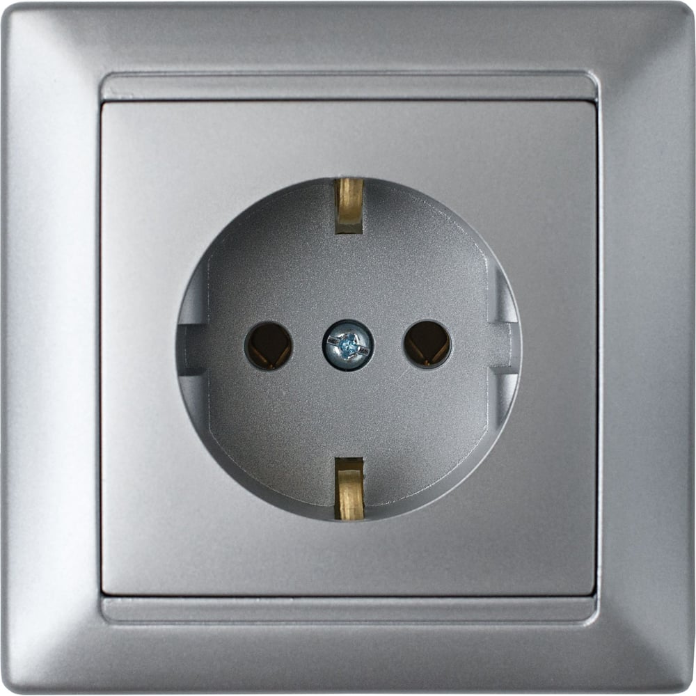 Розетка Bylectrica 1-местная СУ с заз.конт., серия СТИЛЬ, серебро, РС16-306 серебро