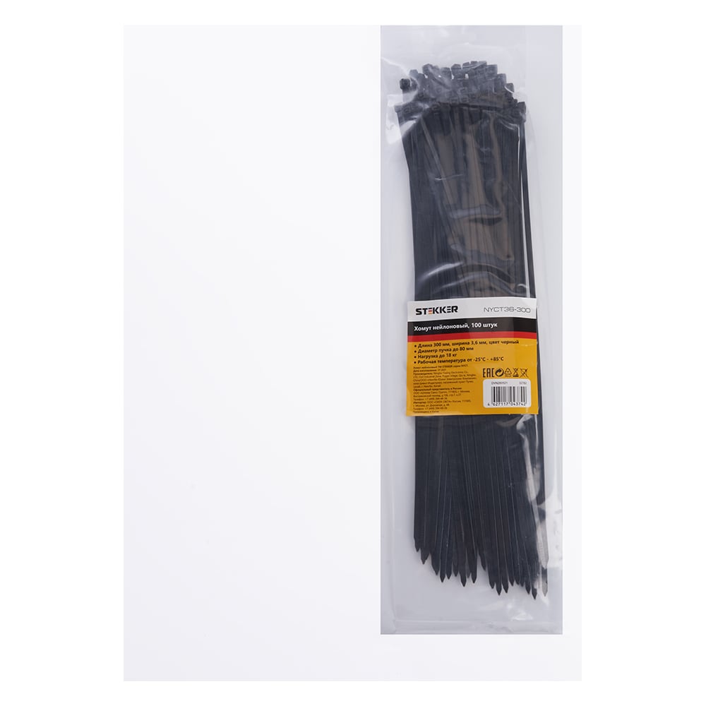 Хомут нейлоновый STEKKER NYCT36-300 3,6x300 мм, d пучка max 80 мм, нагрузка 18 кг, черный, упаковка 100 шт, 32782