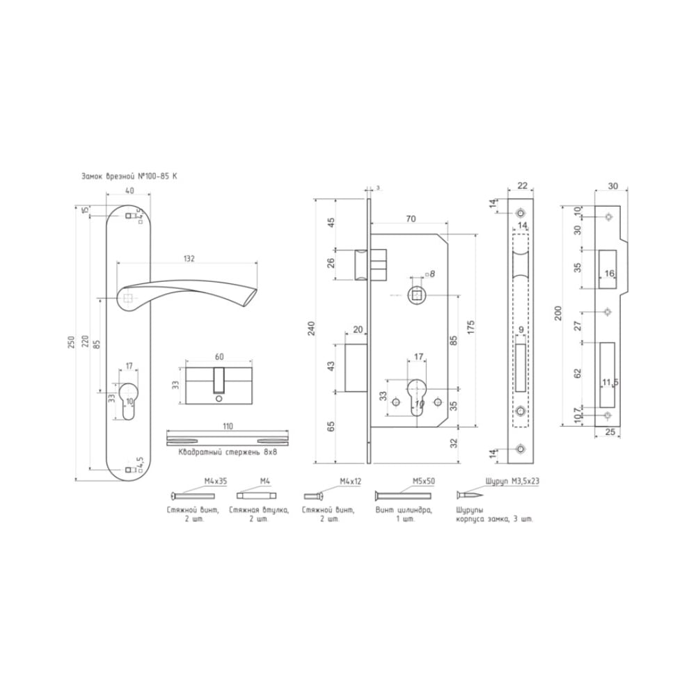 | Комплектация | корпус, механизм, ручки, ключи, ответная планка, крепеж |