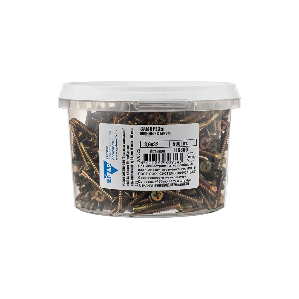 Саморезы оконные с буром 3,9x32 мм, 500 шт в ведре мал Zitar 116809