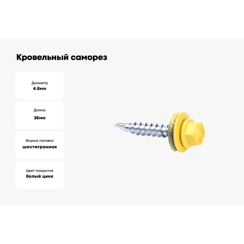 Кровельные саморезы ВИРТУОЗ 4,8х38 мм, RAL 1018, желтый, 25 шт. 2385