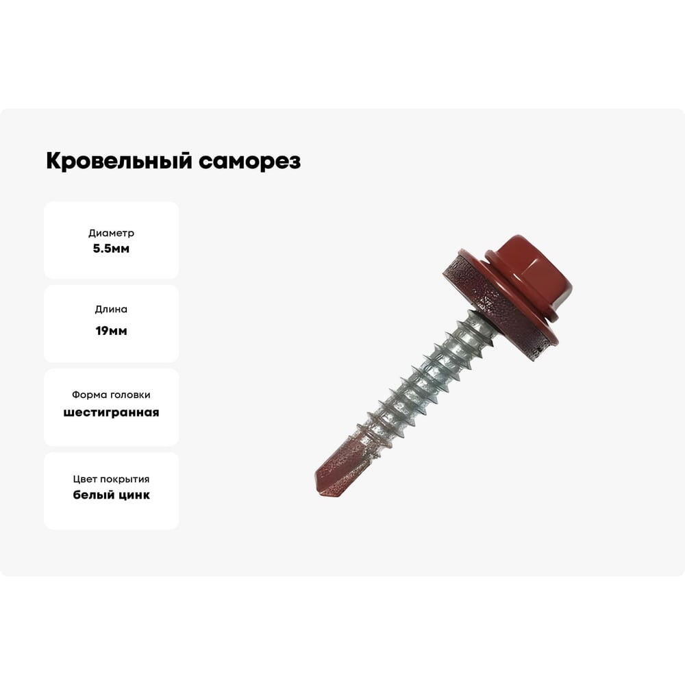 Кровельные саморезы ВИРТУОЗ 5,5х19 мм, RAL 3003, гранат, 25 шт. 29072