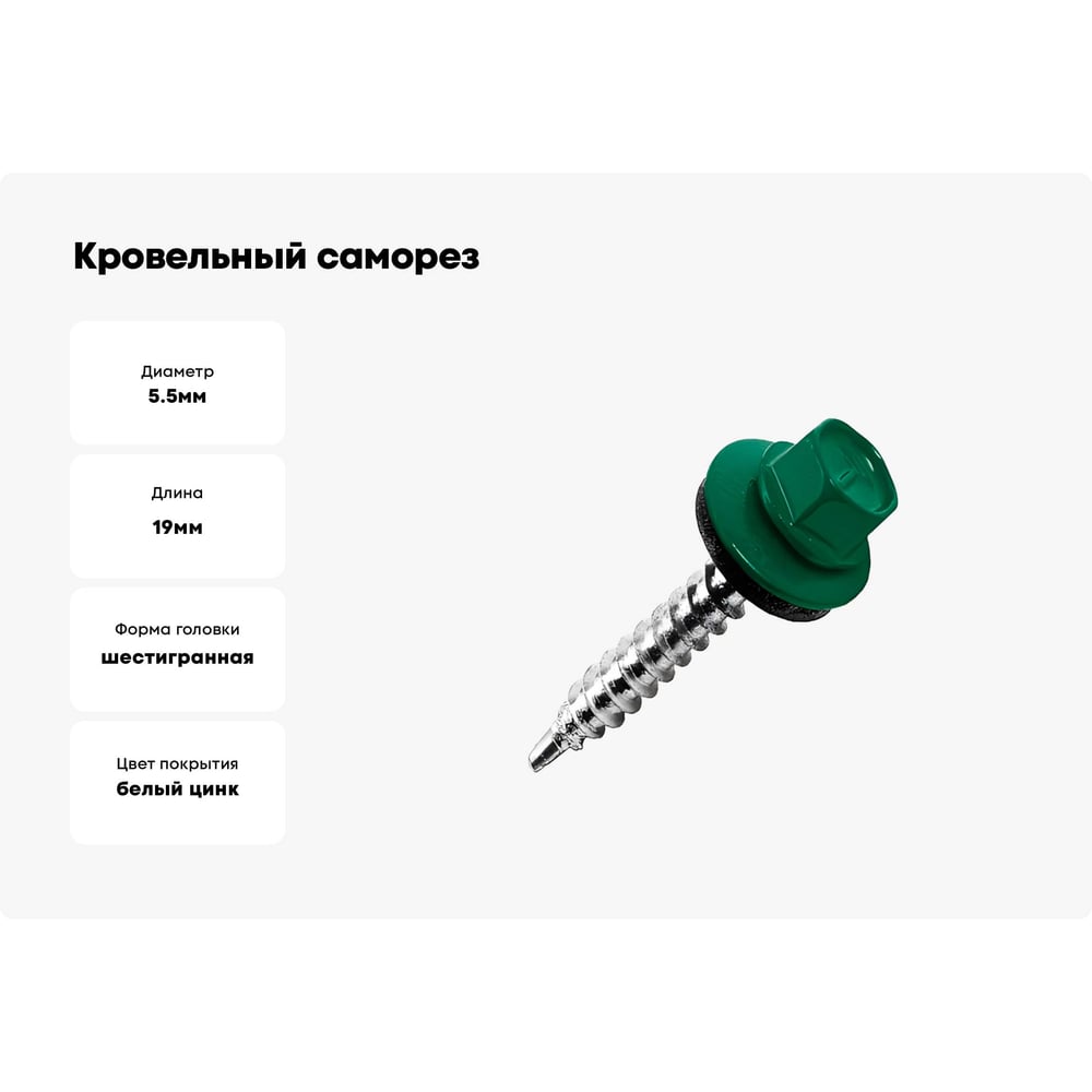 Кровельный саморез Саморезик 5,5х19 RAL6005 зелёный мох (250 шт.) SKRAL6005-5,5х19-250