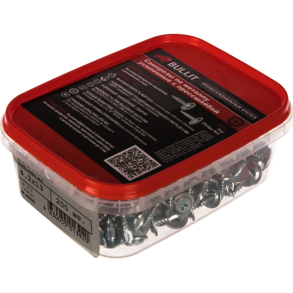 Саморез BULLIT ПШ сверло, усиленный, 4.2x13, 200 шт. 14-0019080