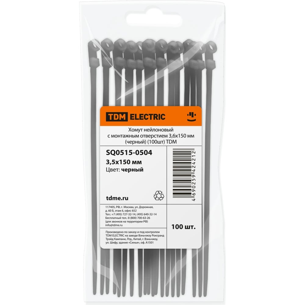 Нейлоновый хомут с монтажным отверстием TDM ELECTRIC 3,6х150 мм, черный, 100 шт. SQ0515-0504
