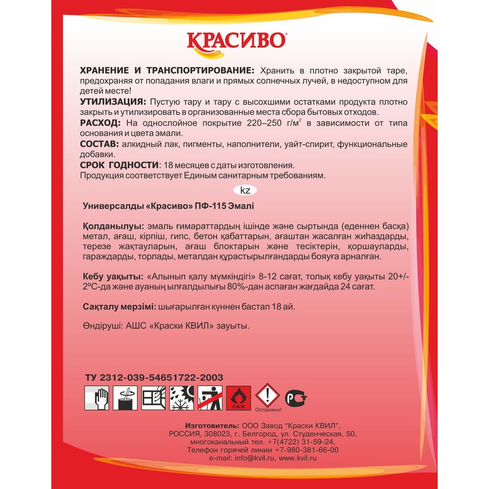 Эмаль Красиво ПФ-115 Бежевый 20 кг / краска для стен по металлу, по дереву 4690417031399