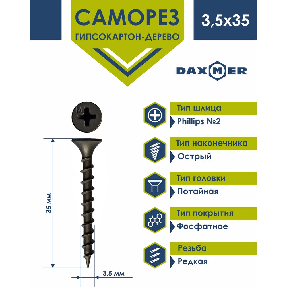 Саморез Daxmer ГКД 3.5х35, 15 кг 394191