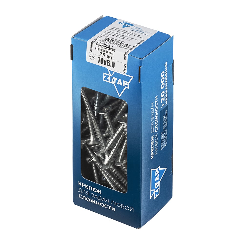 Универсальные саморезы, оцинкованные, 70x6,0 мм, 75 шт., коробка с окном Zitar 102209