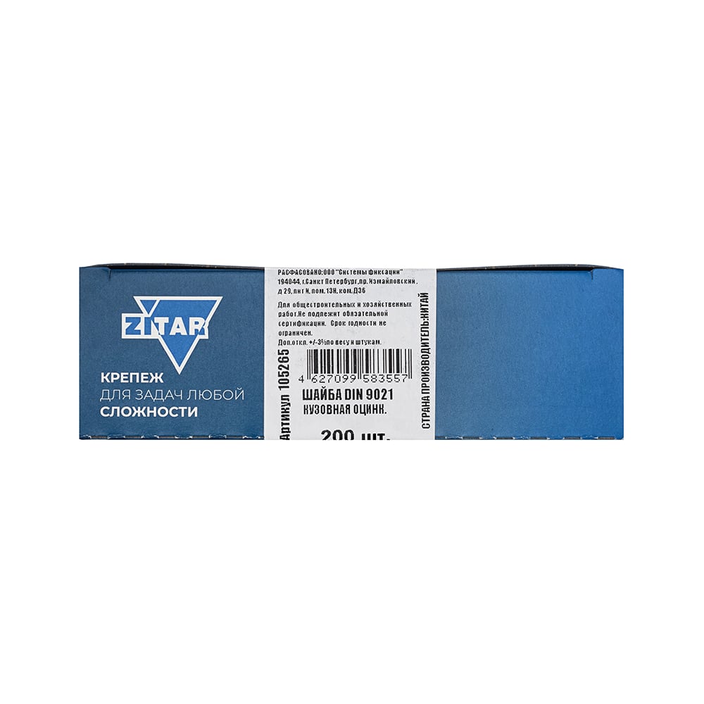 Кузовная шайба DIN9021 оцинкованная М6, 200 шт, коробка с окном Zitar 105265