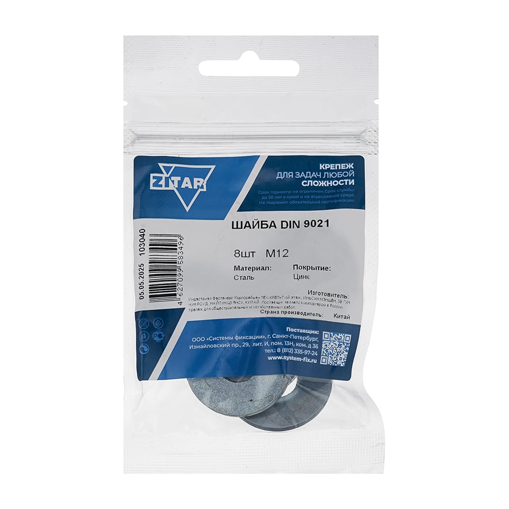 Шайба DIN9021 кузовная оцинкованный M12 8 шт Zitar 103040
