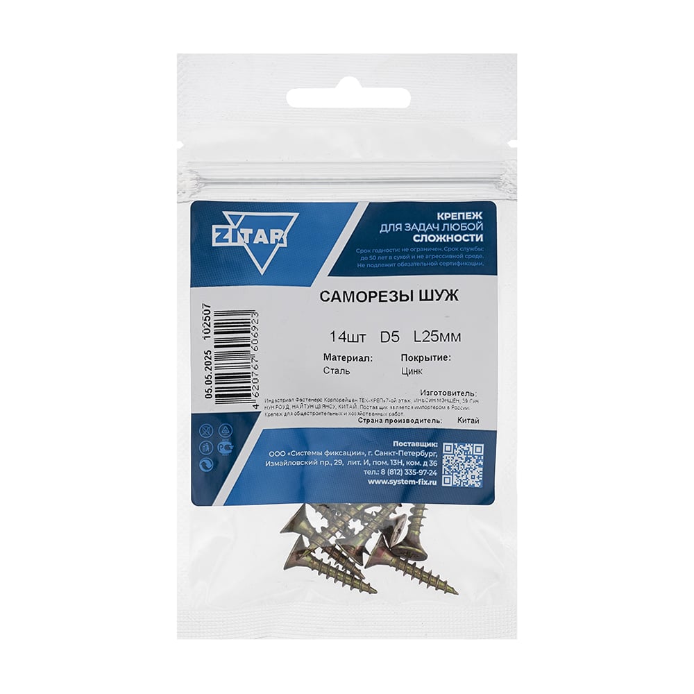 Саморез ШУж с потайной головкой 5,0x25 мм, 14 шт., пакет Zitar 102507