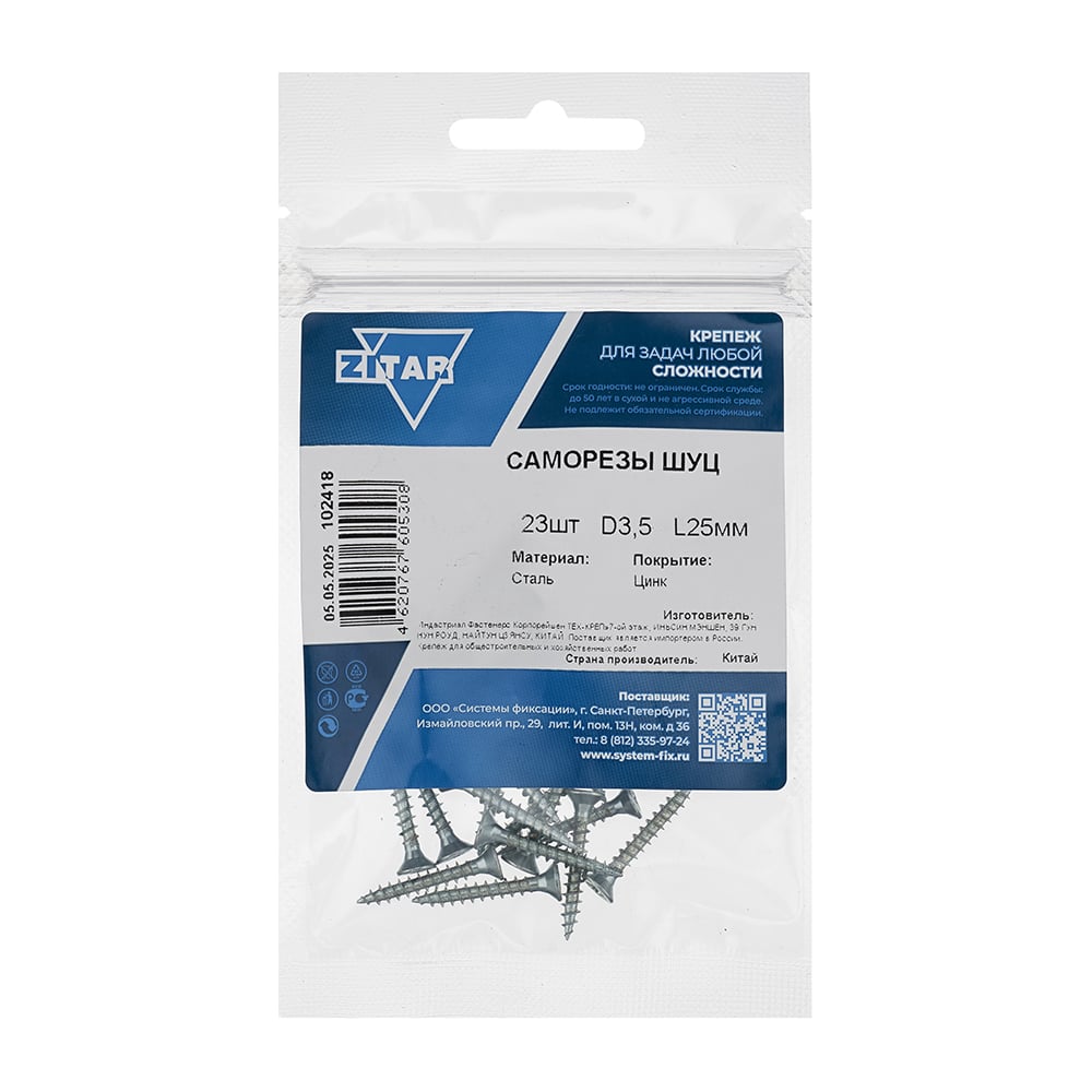 Саморез ШУц с потайной головкой 3,5x25 мм, 23 шт., пакет Zitar 102418