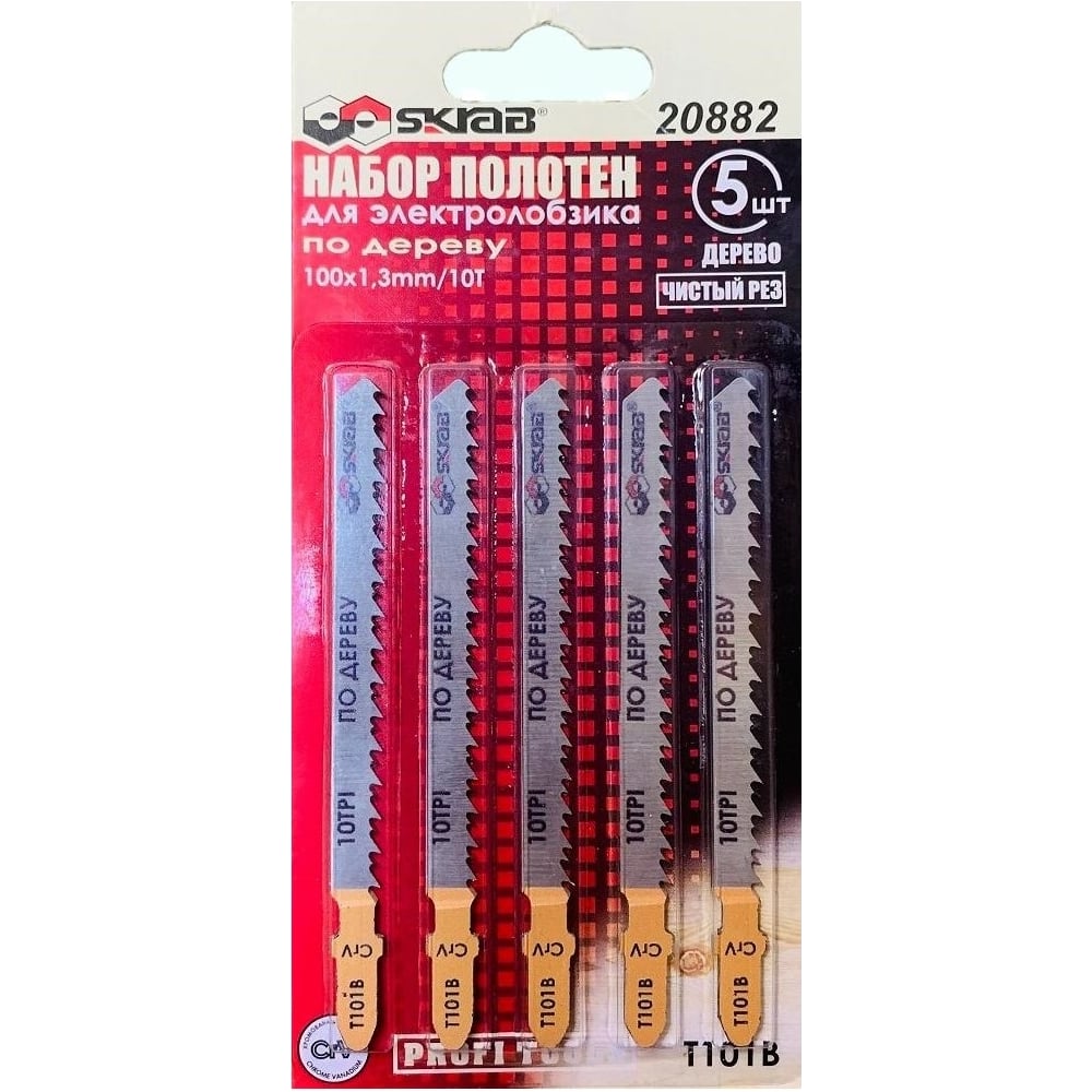 Пилки по дереву Т-101B (5 шт; 100 мм; 10TPI; Cr-V) для лобзика SKRAB 20882