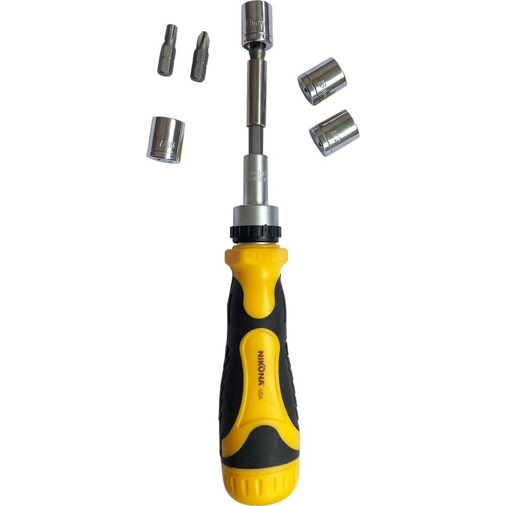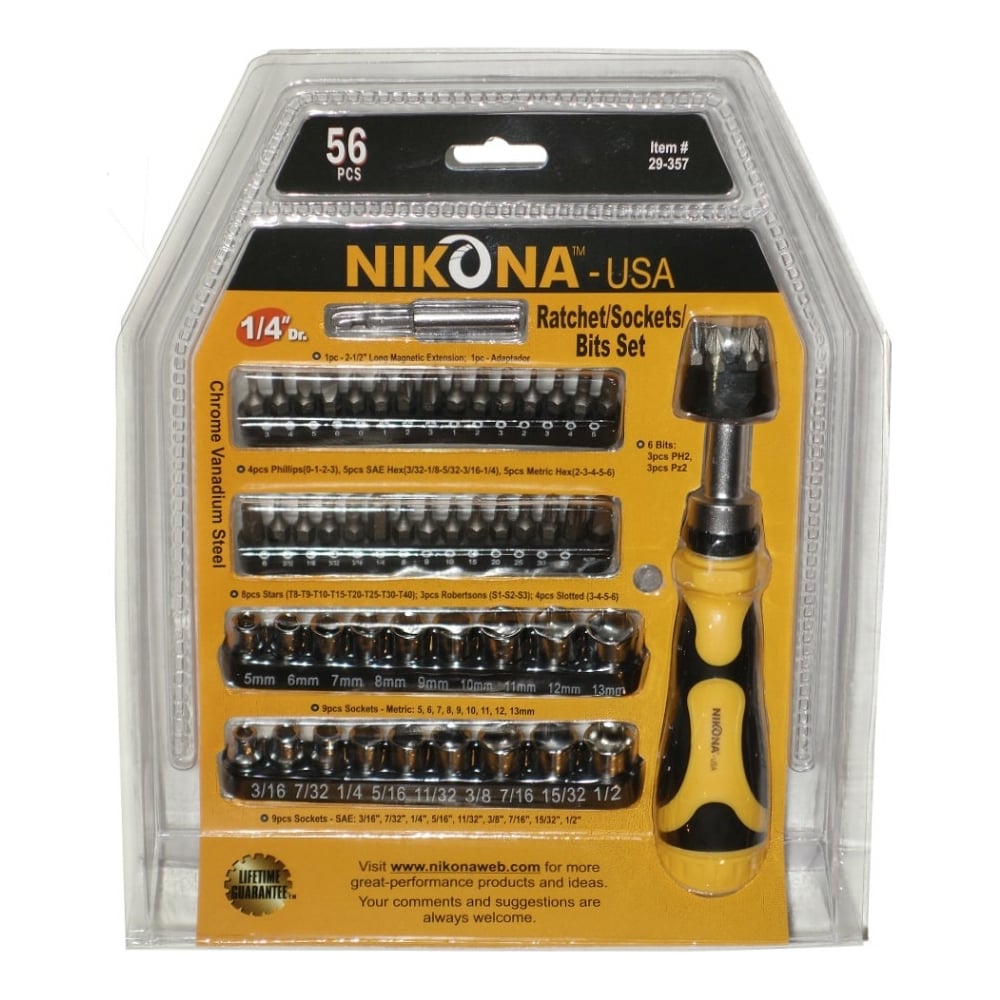 Реверсивная отвертка NIKONA с набором бит и головок SAE и metric 56 предметов 29-357