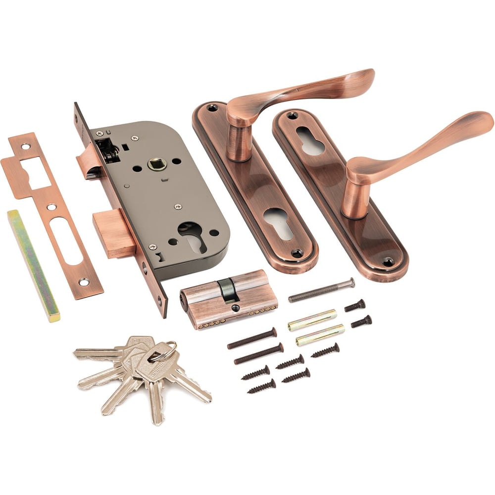 Врезной замок с ручками Аллюр 127/1 AC старая медь 1079