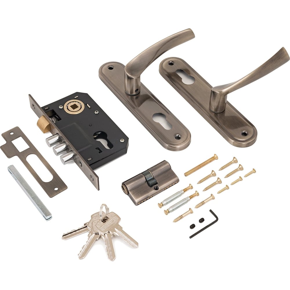 Врезной замок с ручками Аллюр 103/3-61А1203 AB старая бронза 6800