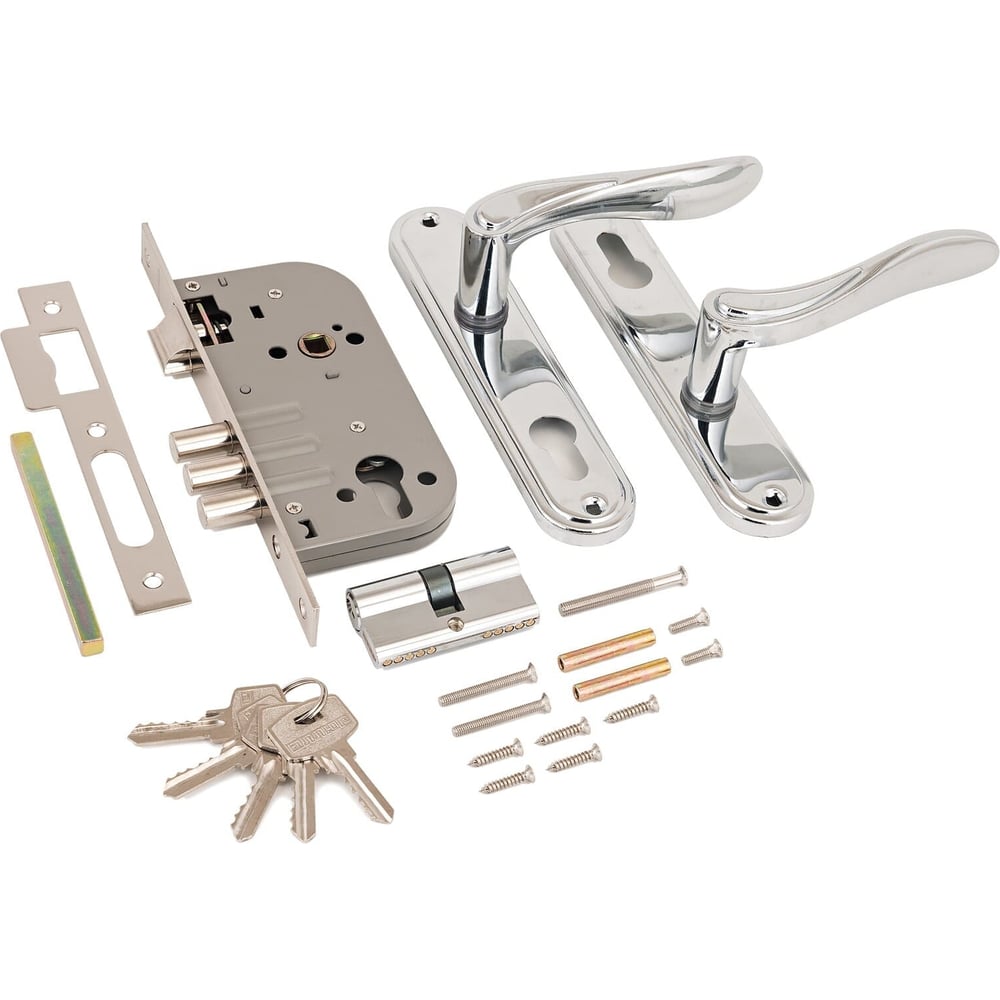 Врезной замок с ручками Аллюр 102/3 CP хром 5790