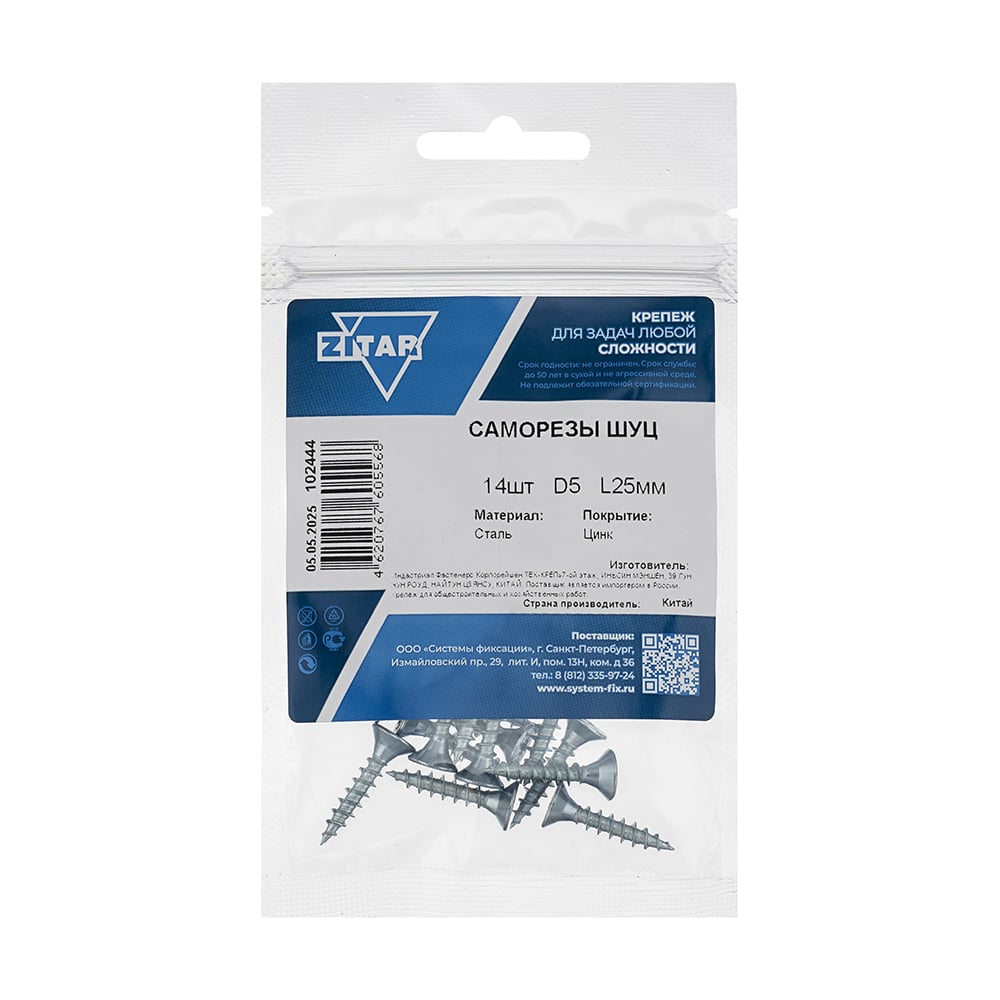 Саморез ШУц 5,0х25 потайная головка 14 шт, пакет Zitar 102444
