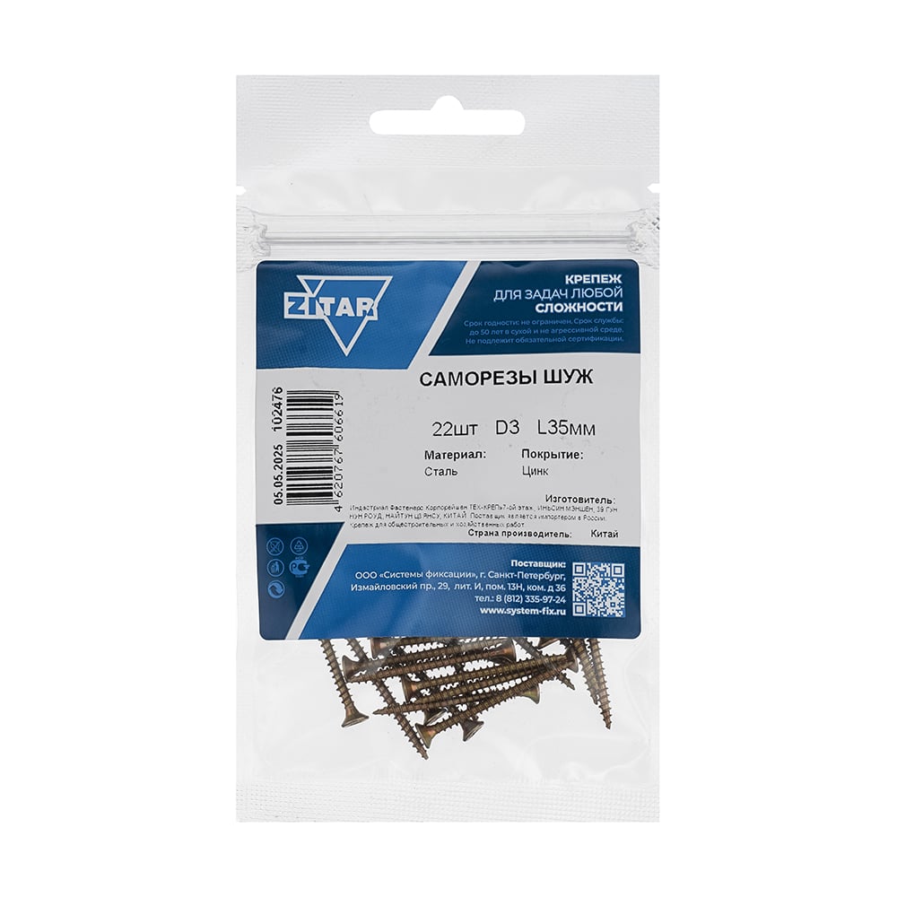 Саморез ШУж с потайной головкой, 3,0x35 мм, 22 шт., пакет Zitar 102476