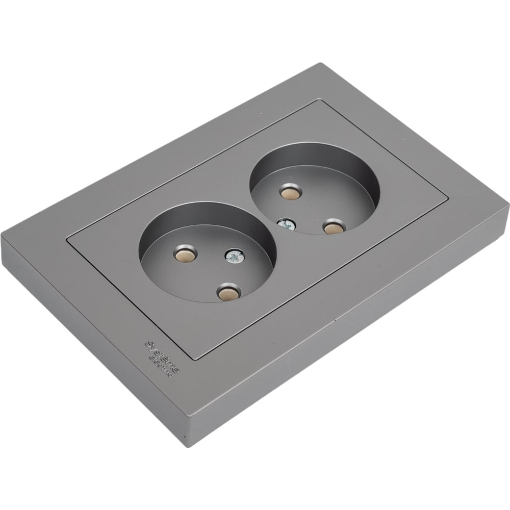 Розетка Systeme Electric AtlasDesign Сталь б/з двойная, 16А, в сборе SE ATN000920