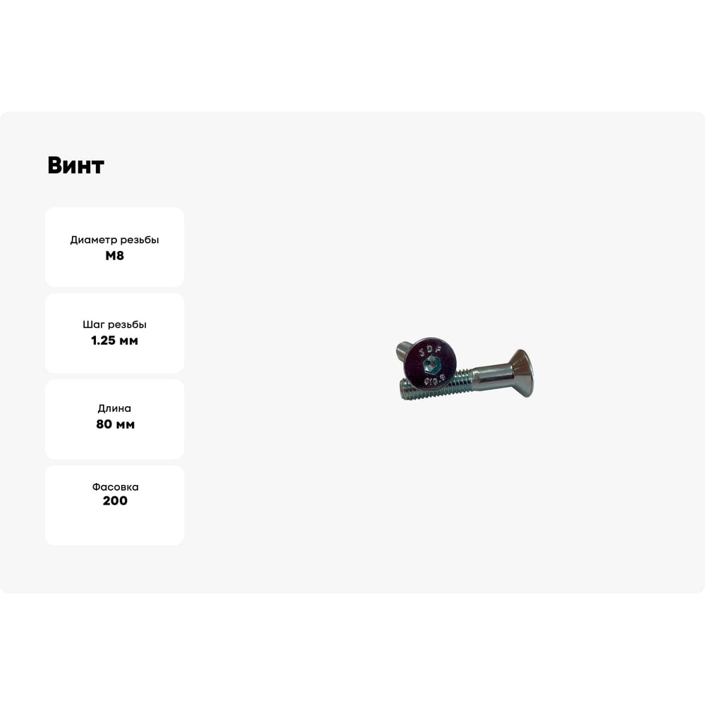 Винт ZAMETAL М8x80, пр. 10.9, с пот. гол., в/ш, DIN 7991, оц., уп. 200 шт. ZA521033