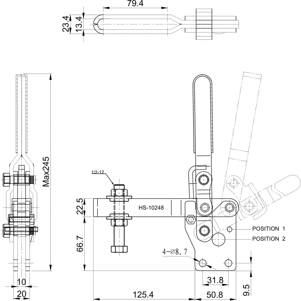 Зажим с вертикальной рукоятью HS CLAMP HS-10248