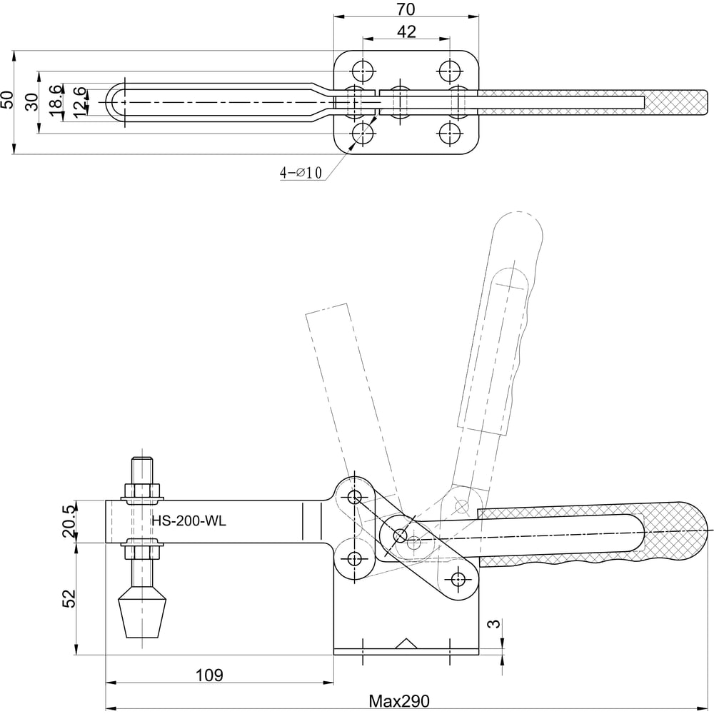 Зажим с горизонтальной рукоятью HS CLAMP HS-200-WL