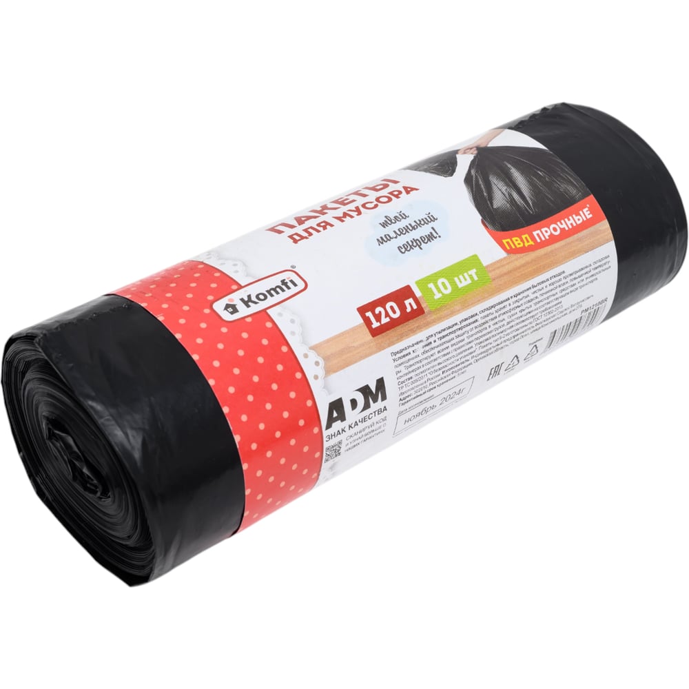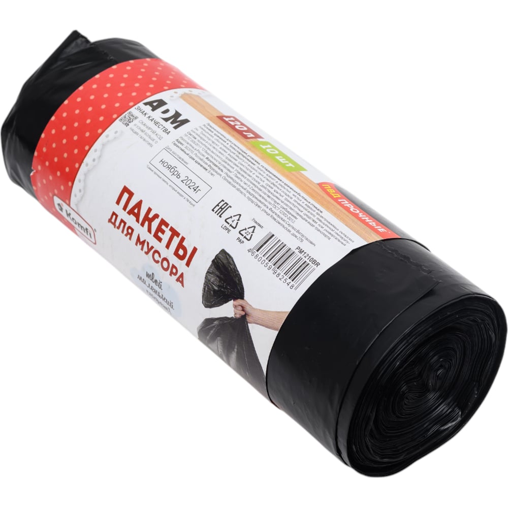 Мешки для мусора в рулоне (ПВД; 35 мкм; 120 л; чёрные) Komfi 115160
