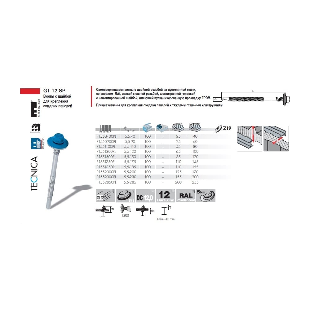Винт для сэндвич-панелей Etanco GT12 SP P1552850PL