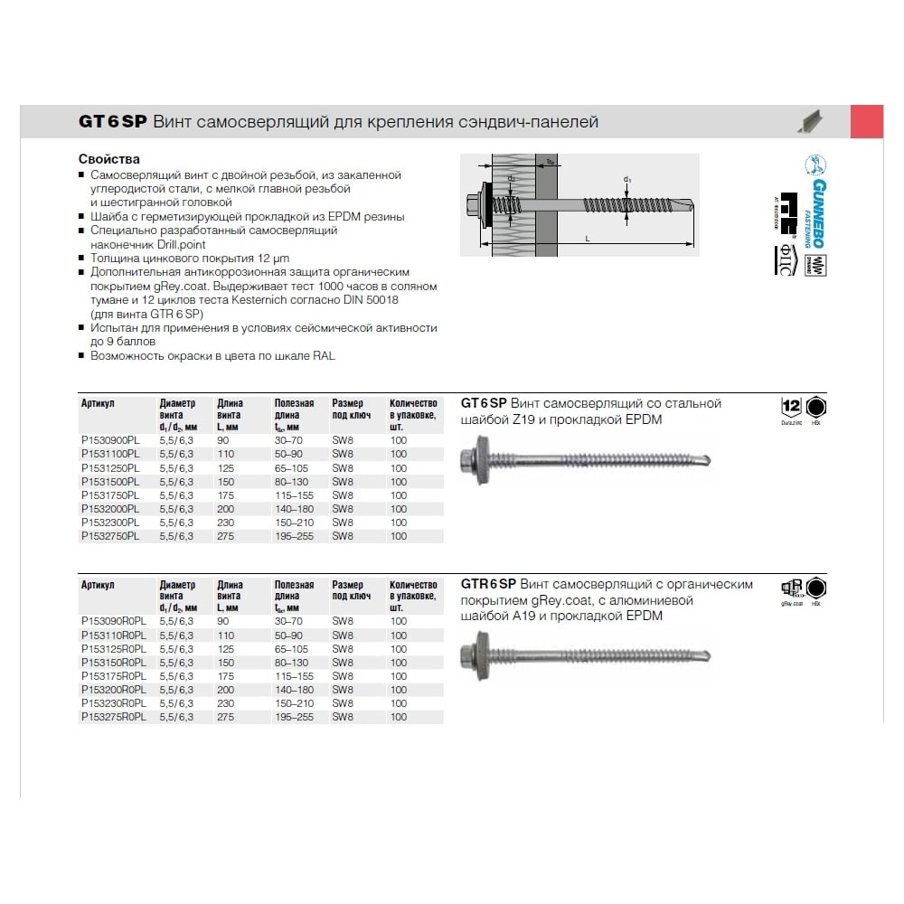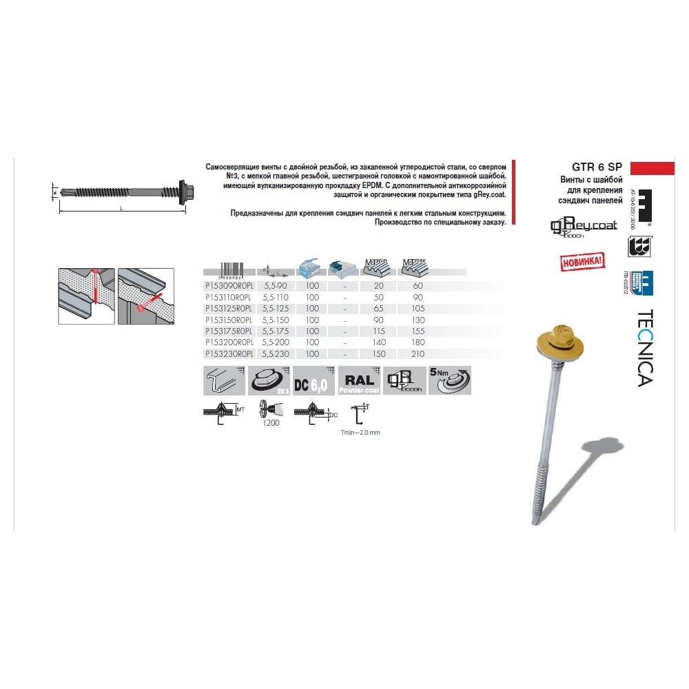 Винт для сэндвич-панелей Etanco GTR6 SP P153320R0PL