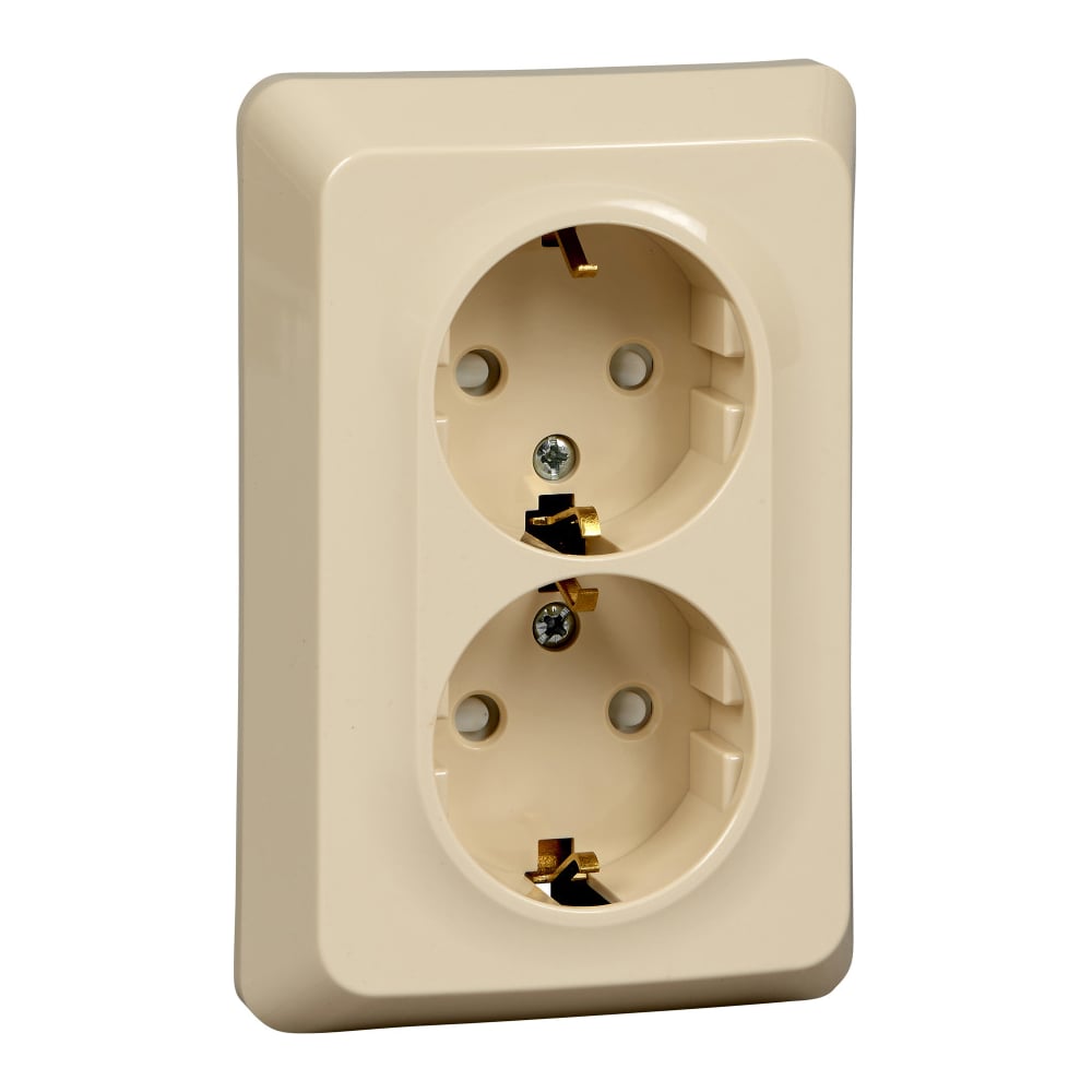 Розетка Systeme Electric Этюд Крем 2-ая с заземлением, со шторками 16А 250B SE PC16-108K
