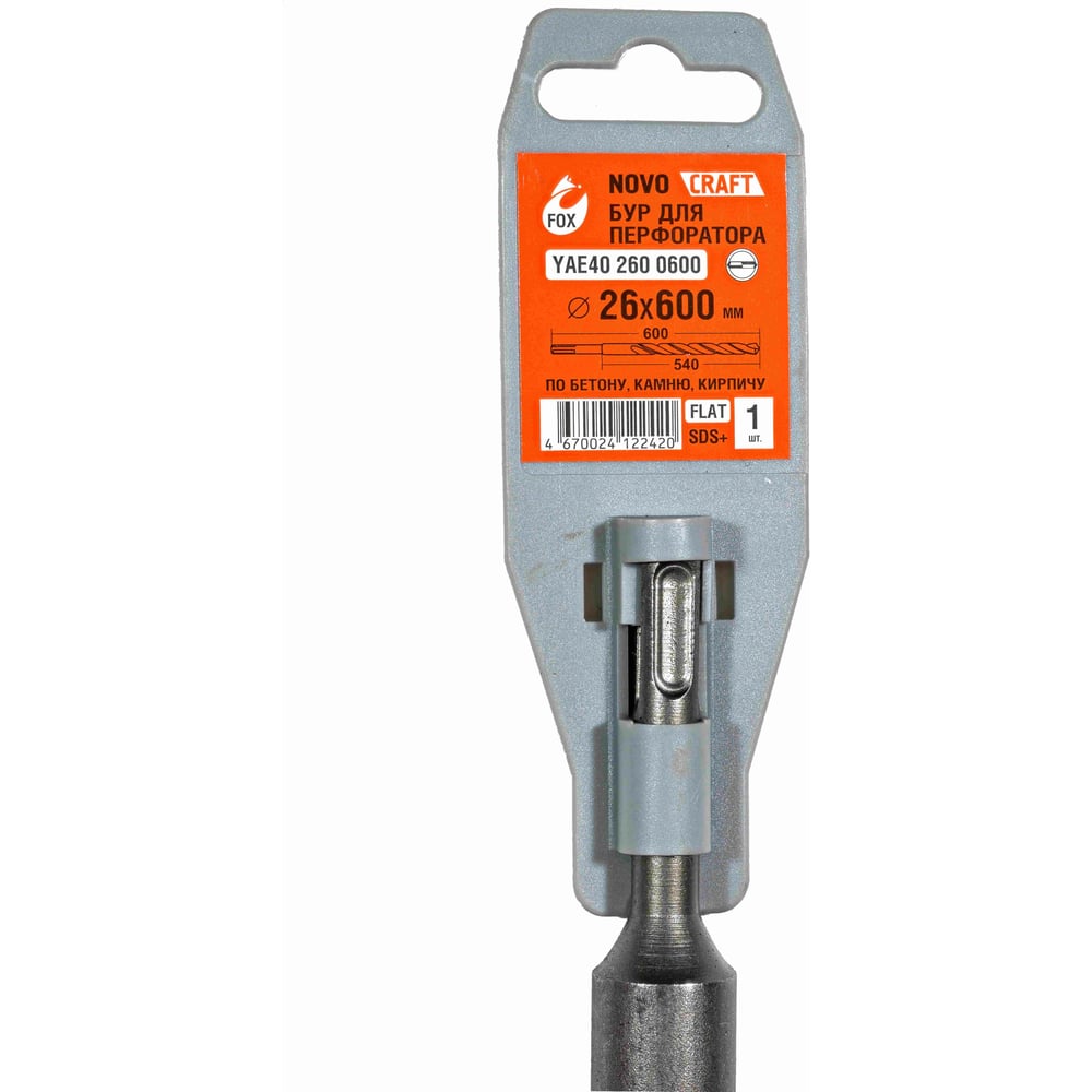 Бур по бетону Fox (26x600 мм; SDS-plus; сталь 40Х) для перфоратора Novocraft YAE402600600