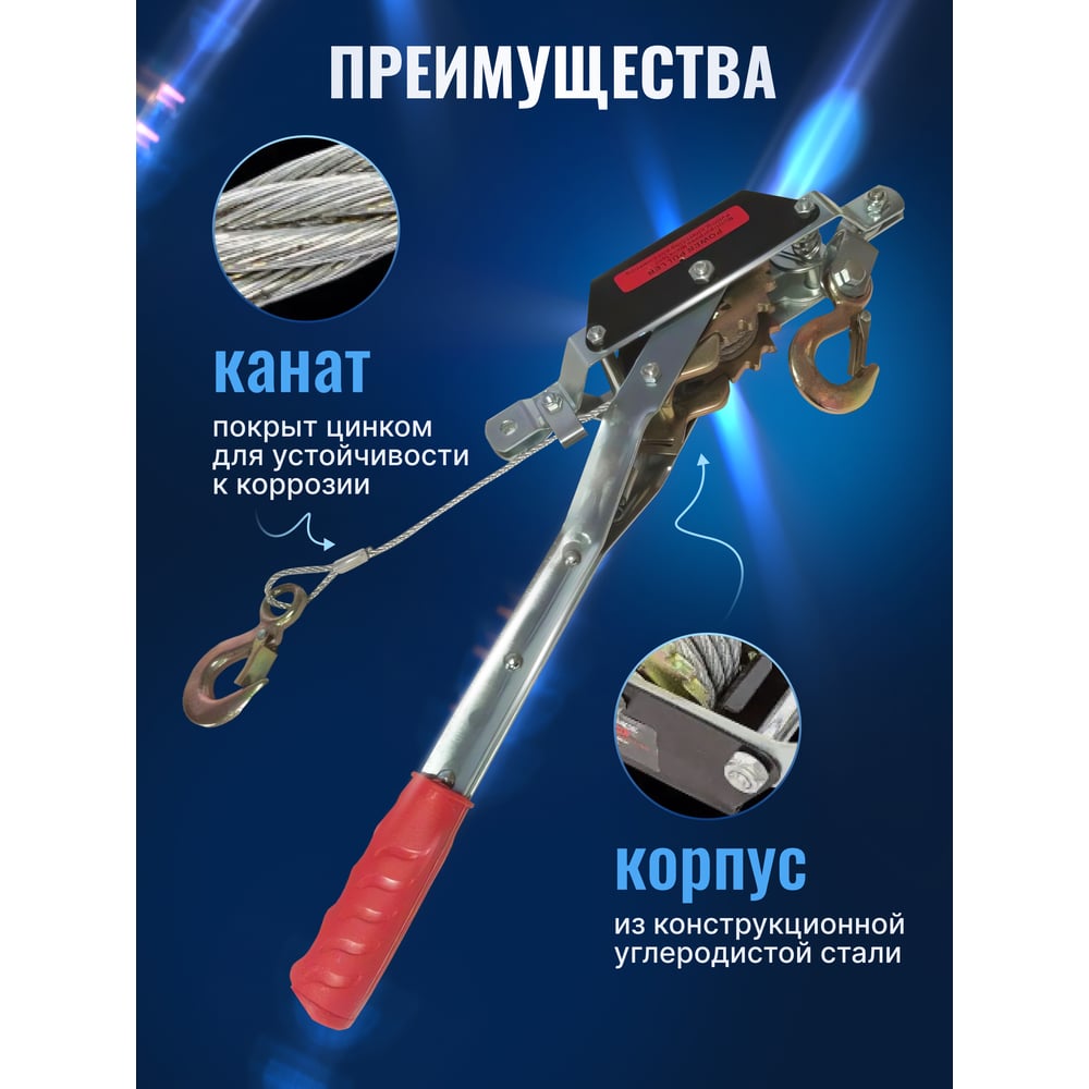 Рычажная лебедка ForceKraft FK-TRK-1000 1т, диаметр троса - 5мм, длина - 2.2м 48594