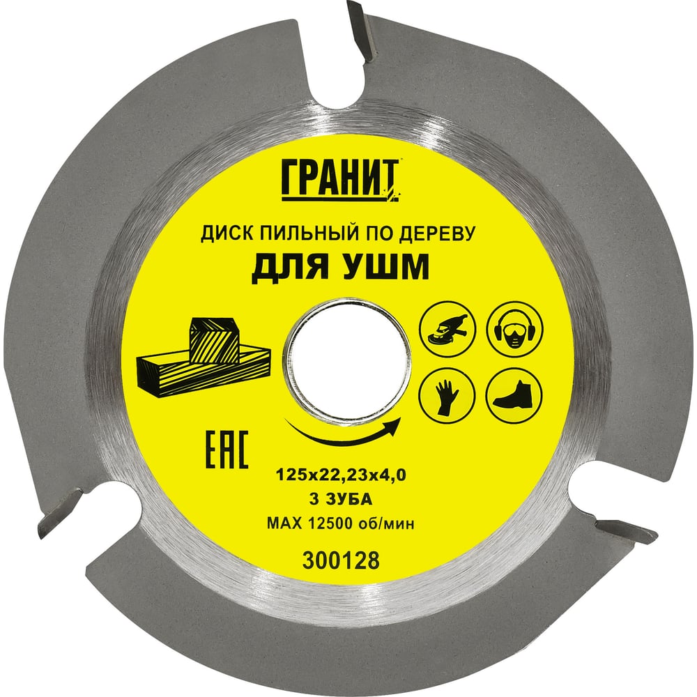 Диск пильный твердосплавный по дереву (125x22.23 мм; 3Z; 4 мм) для УШМ Гранит 300128