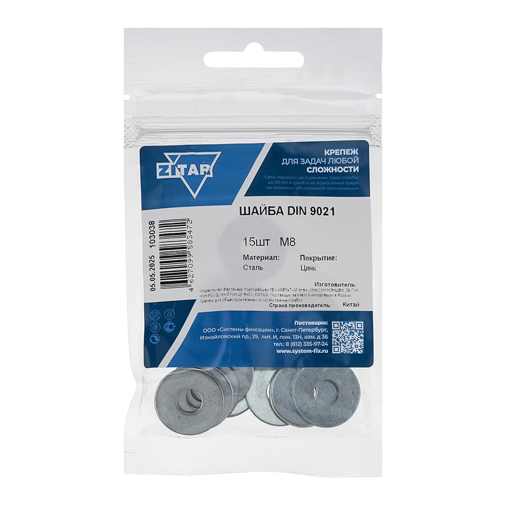 Шайба DIN9021 кузовная оцинкованный M8 15 шт Zitar 103038