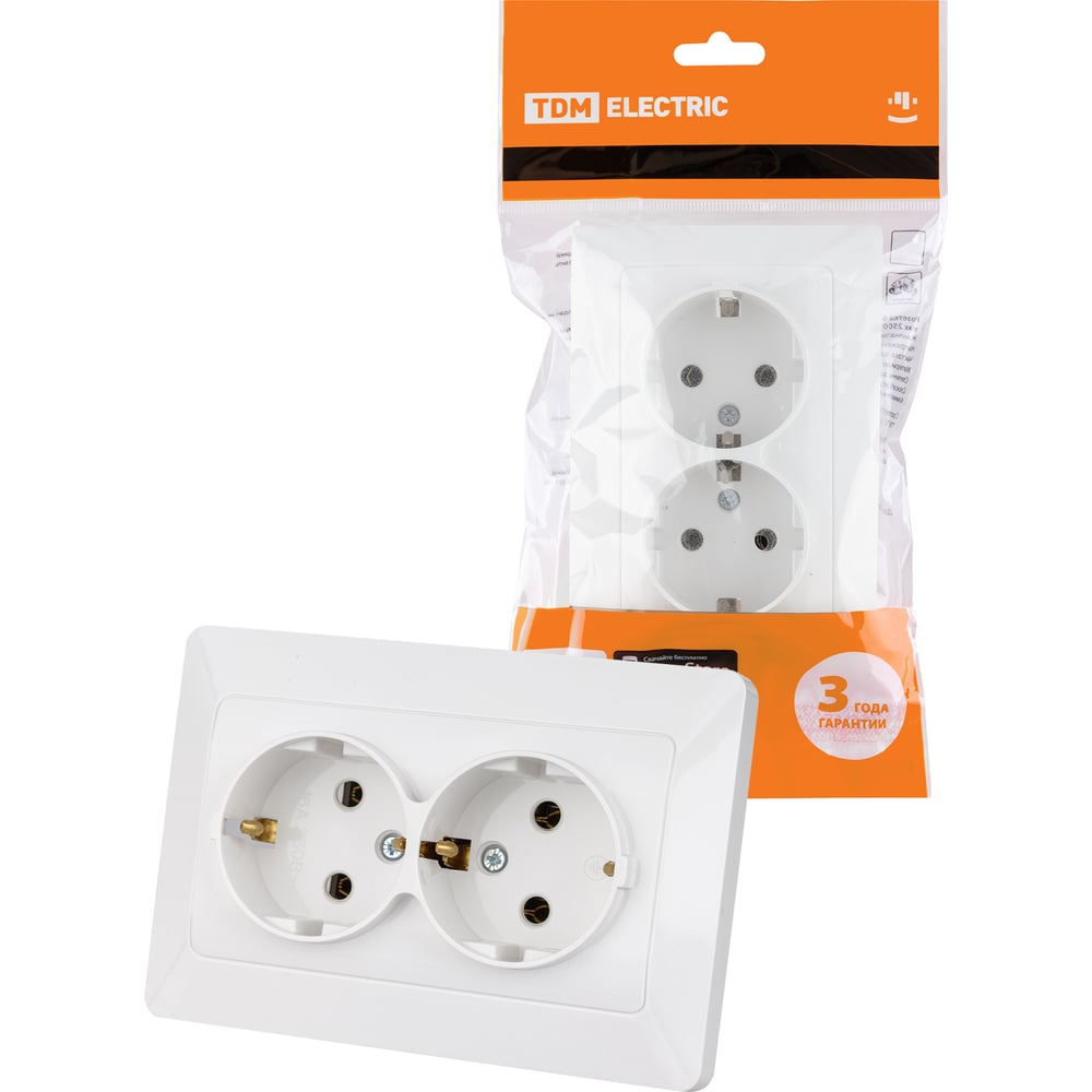 Двойная розетка TDM ELECTRIC 2П+З 16А 250В белая Ильмень SQ1823-0012