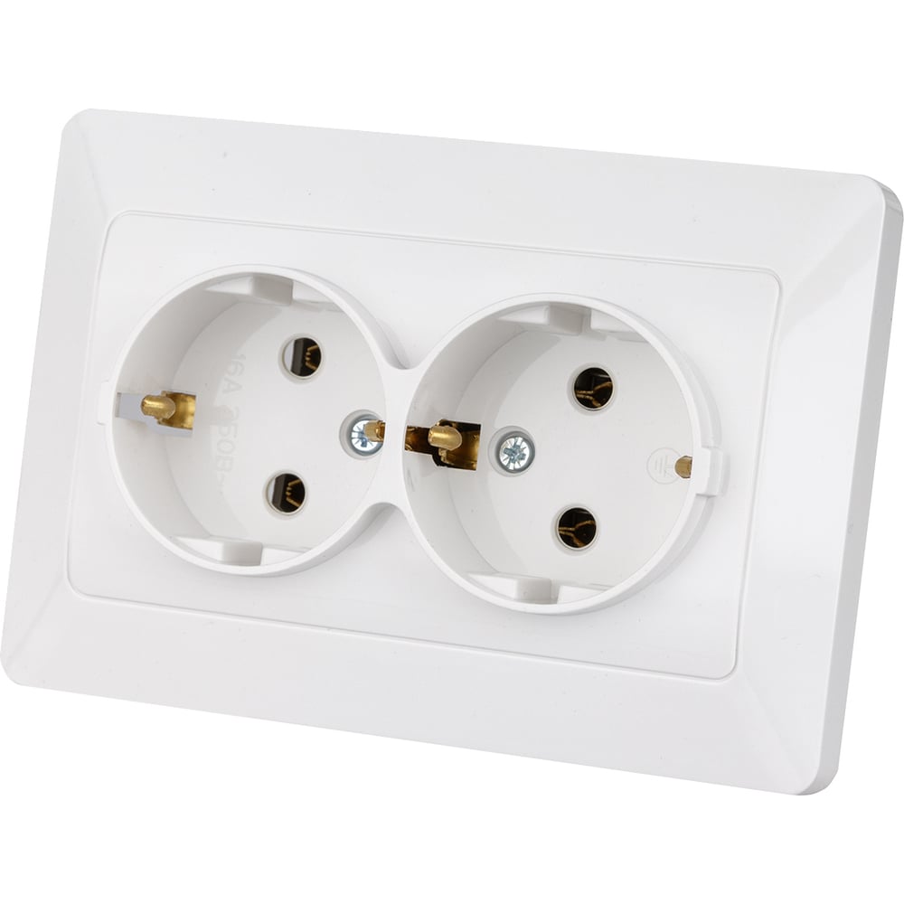 Двойная розетка TDM 2П+З 16А 250В белая Ильмень SQ1823-0012