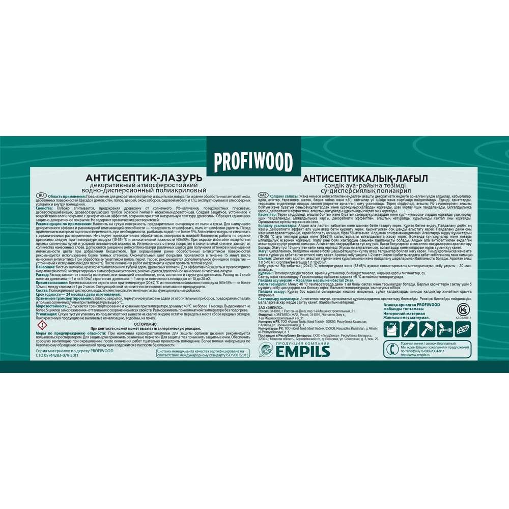 Декоративный атмосферостойкий антисептик-лазурь Profiwood 70018