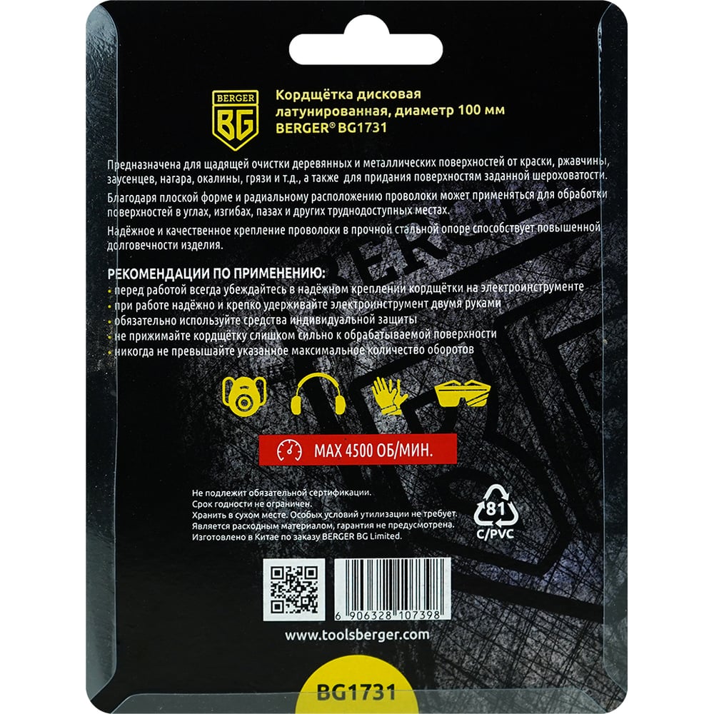 Дисковая кордщетка Berger BG BG1731