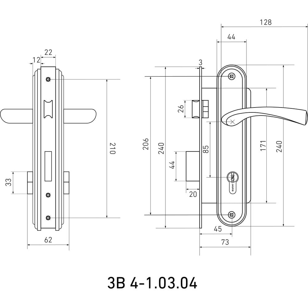 | Удаление ключевого отверстия (Backset) | 45 мм |