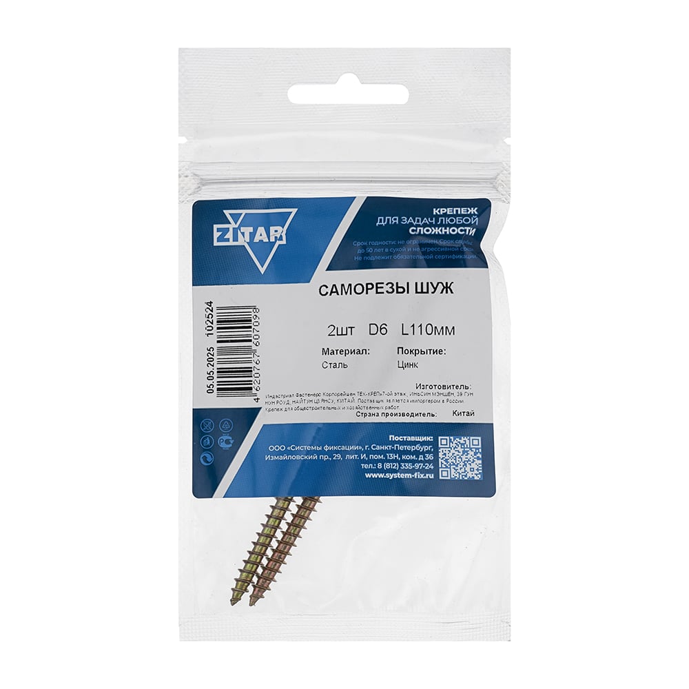 Саморез ШУж 6,0х110 потайная головка 2 шт, пакет Zitar 102524